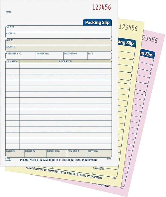 Packing-slip book is a great way to ensure all shipments contain the correct paperwork.