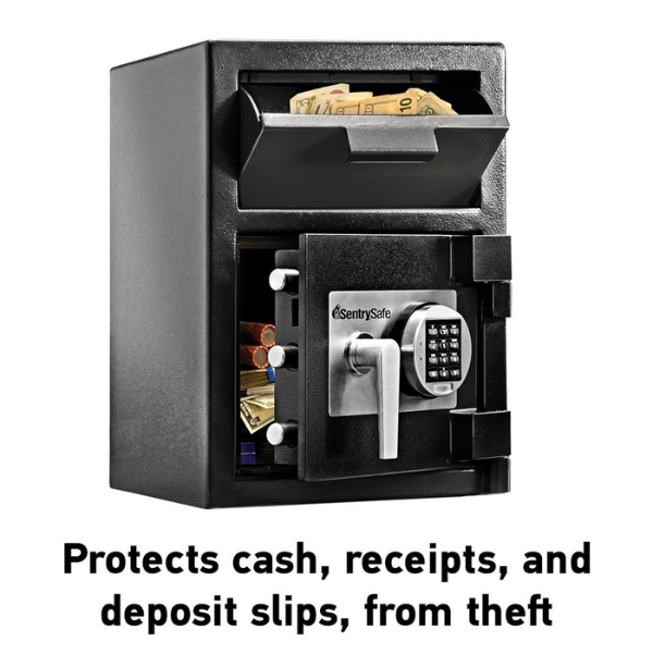 The SentrySafe depository safe is an ideal choice for storing cash, checks, depository slips, credit cards and other important documents. Ideal for convenience stores, restaurants, bars, hotels/motels, small cash businesses, pawn shops, independent store fronts and not-for-profit operations.