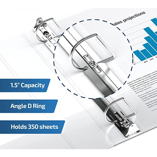 1.5-inch 3-Ring Binders with durable Slant-D rings that hold 25% more than round-ring binders.
