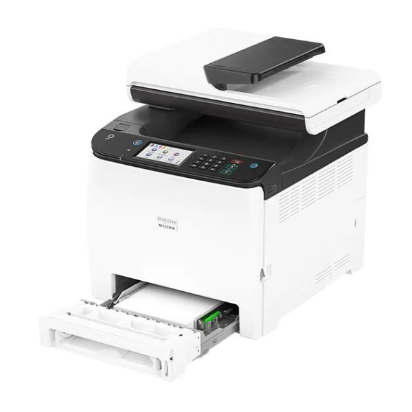 Combining class-leading functionality with a low total cost of ownership, the RICOH M C251FW multifunction color printer is made for business. Keeping pace with demand, it delivers immaculate double-sided colour and black-and-white output at a productive 26 pages per minute. Its large colour touchscreen panel simplifies operation and, to save time, the integral Single Pass Document Feeder quickly scans double-sided originals in a single pass. The optional second paper tray expands capacity and enables different sizes and types of paper to be held on hand in the optional tray, ready for use. This device offers a high level of user authentication, encryption and access control to keep your data and network safe and secured. And, with Wi-Fi Direct making it easy to connect, the M C251FW can be shared by multiple users.