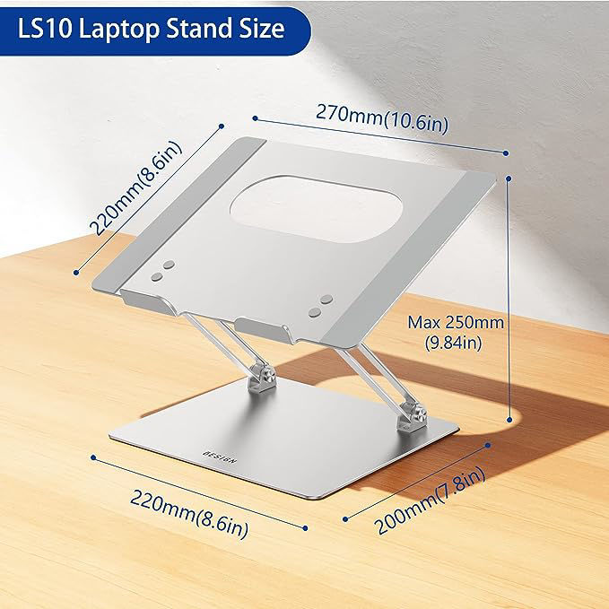 The open aluminum design provides good ventilation and airflow to prevent your laptop from overheating. Thanks to the open design, you could also keep your laptop peripherals under the stand, such as keyboard, mouse and other office items.