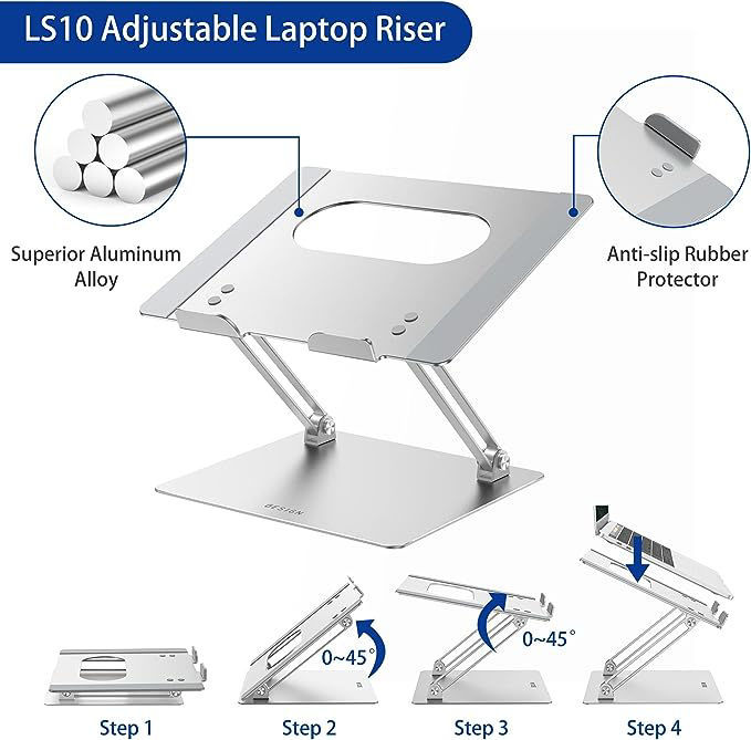 This adjustable laptop stand is made of premium Aluminum alloy, it is sturdy, support up to 13 lbs(6kg), the rubber on the holder hands sticks tightly, ensure your laptop stable on the stand and prevent any scratches.