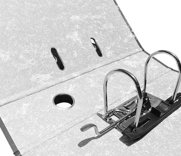 Arch type rings with 80 mm distance between rings. Ring measures 65 x 45mm. Rados ready to press the mechanism rings to keep the file closed.
