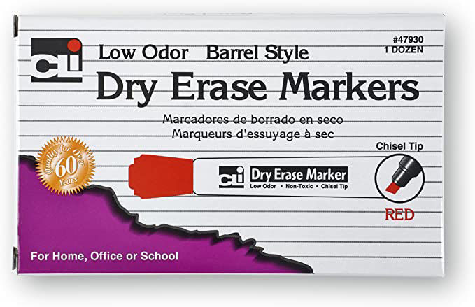 Barrel style dry erase markers with chisel tip