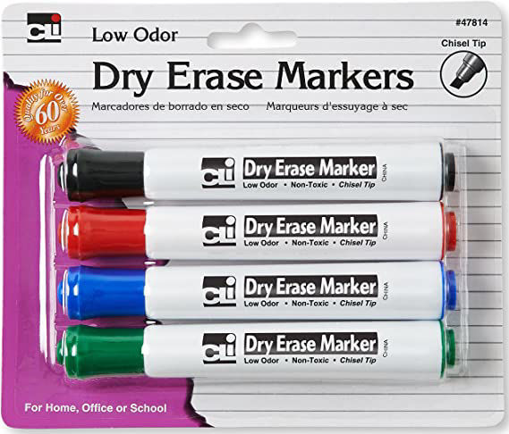 53-015E CLI Dry Erase (Whiteboard) Markers (4) - Asstd #47814