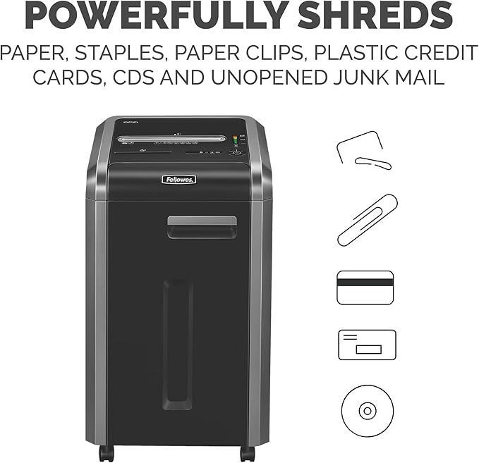 Fellowes Powershred 225Ci is a heavy duty shredder featuring jam-prevention technology and auto-reverse capabilities in case of paper jams or overloads.