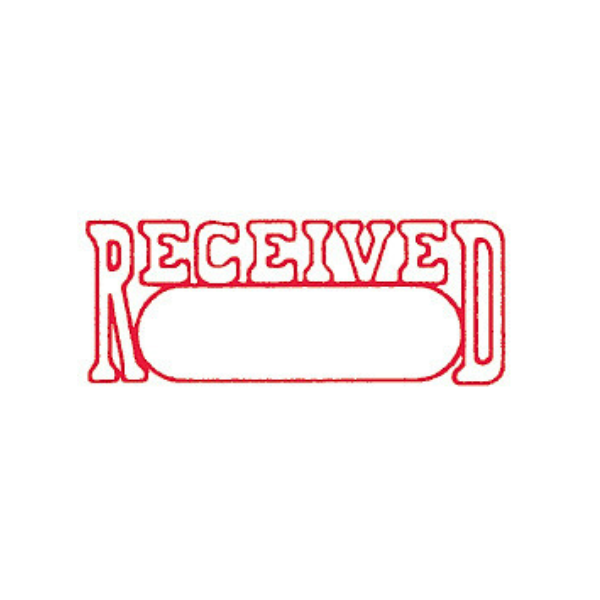 The stamp comes preconfigured with the word "RECEIVED," which is commonly used to indicate that an item has been received and acknowledged.