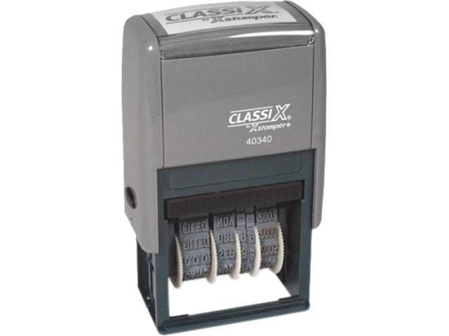 The stamp includes a built-in date feature, allowing you to easily imprint the current date along with one of the 12 pre-defined phrases.