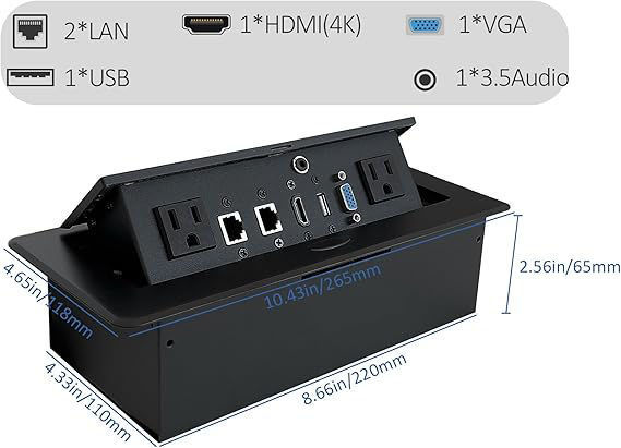 Configuration: US power, 2 RJ45, 1 HDMI, 1 USB data, 1 VGA and 1 x 3.5 mm audio