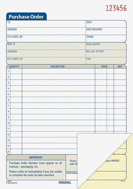 07-041A 8x5 Purchase Order Book (3) Carbonized #TC5831