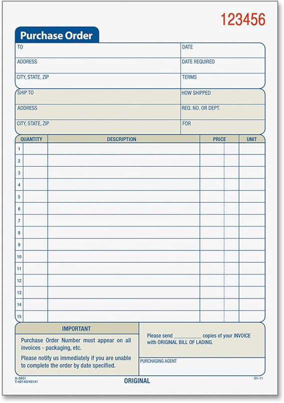 07-041A 8x5 Purchase Order Book (3) Carbonized #TC5831