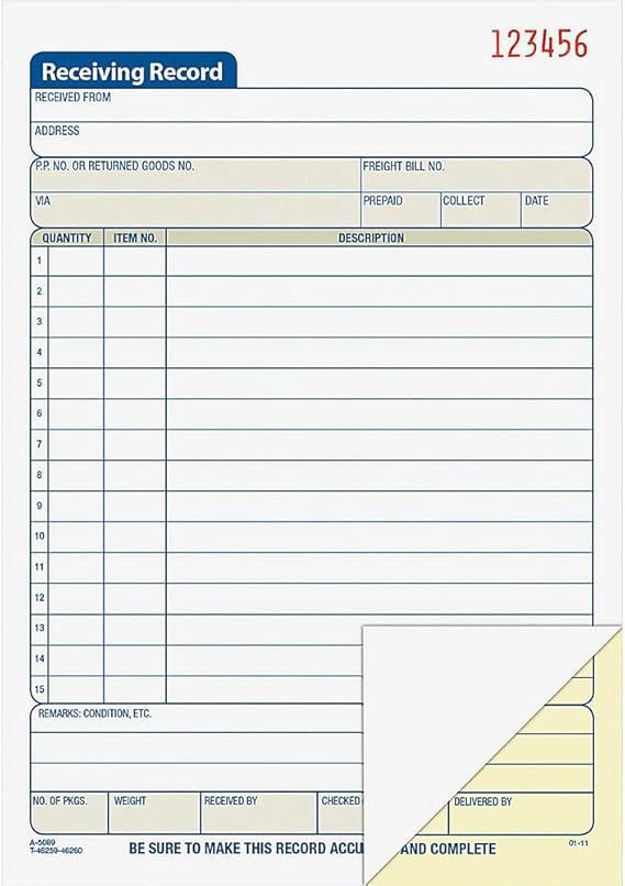 07-043A 8x5 Receiving Book (3) Carbonized #TC5089