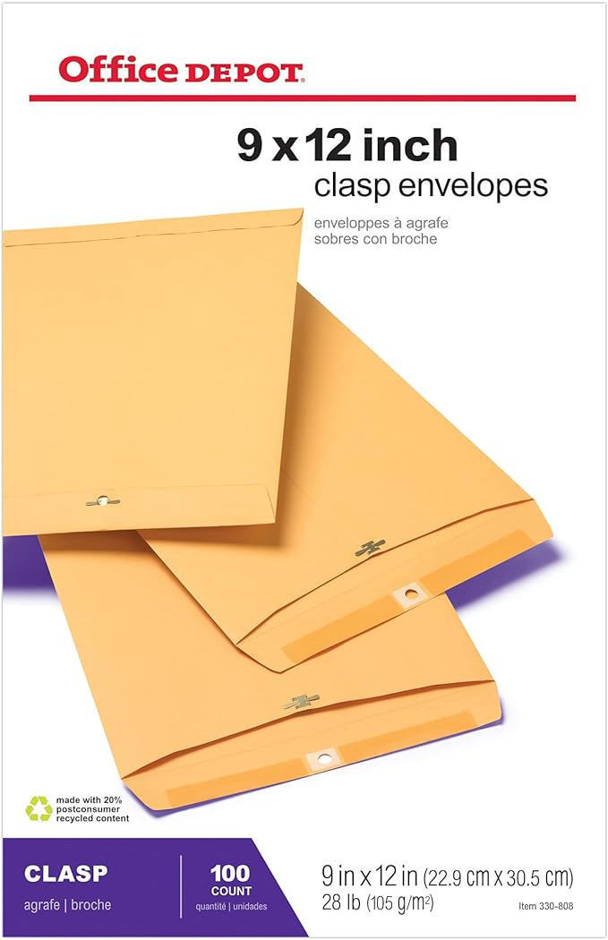 Large clasp envelopes are a staple in any office. Whether you need to mail a large document or just keep the pages of your annual report together in your desk, these Office Depot manila clasp envelopes can help.