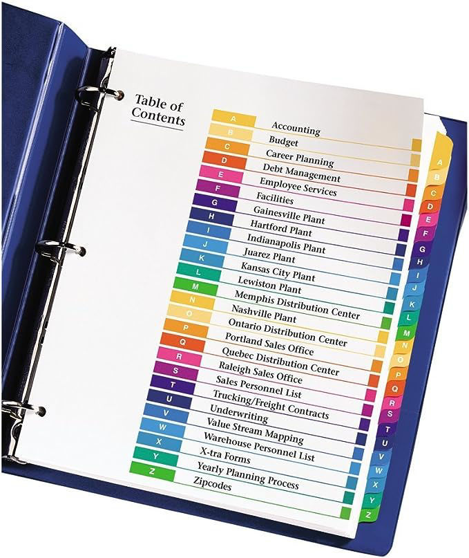 The Avery A-Z L/S Table of Contents Index is a comprehensive and efficient organizational tool for creating professional table of contents.
