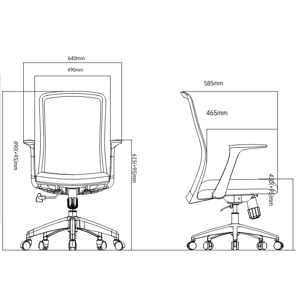 Overall Diimensions: 640 W x 585 D x 890 (+95) H (mm)