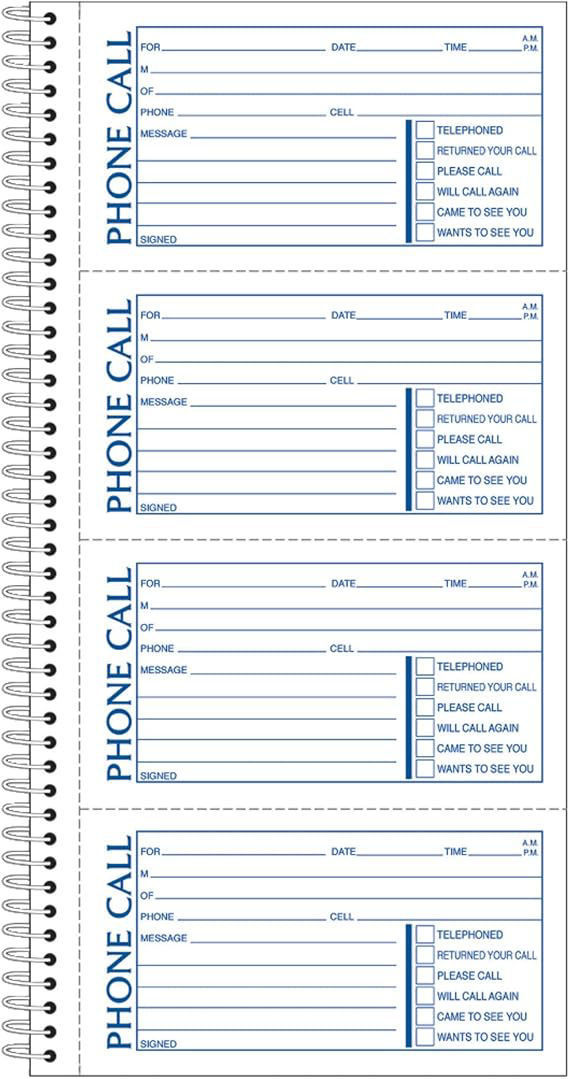 Adams Phone Message 5-1/2" x 11" book with 400 sets (four message forms per page.) and 2-part carbonless format with a white and canary paper sequence.