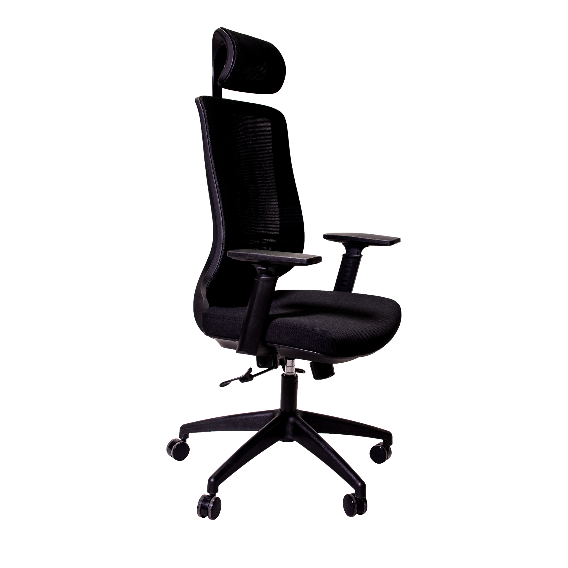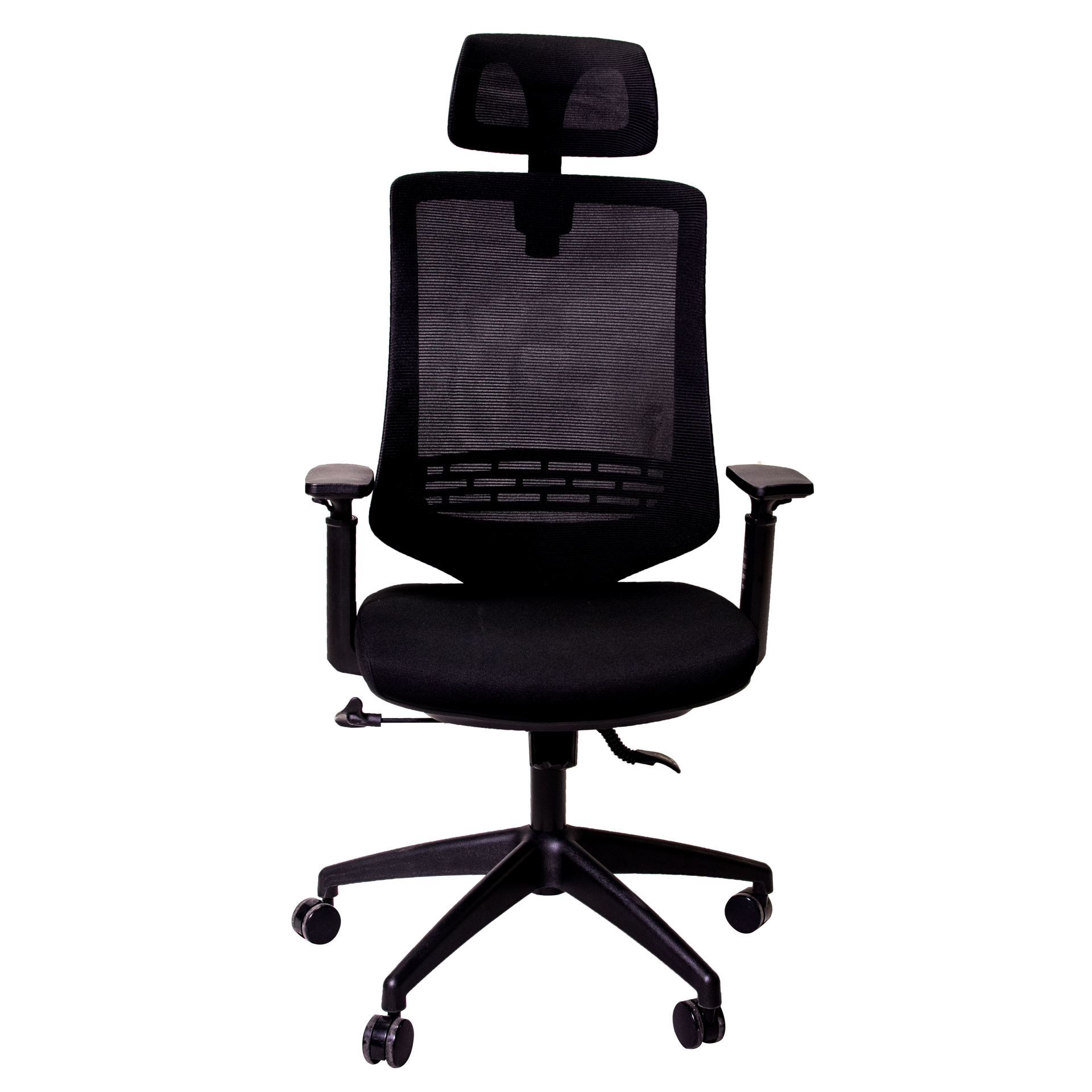 Anji High Back Full Headrest Mesh Chair w/Arms - Black
