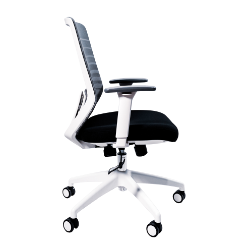 Ventilated high mesh back with integrated lumbar support prevents overheating and promotes better posture, while the padded seat increases comfort