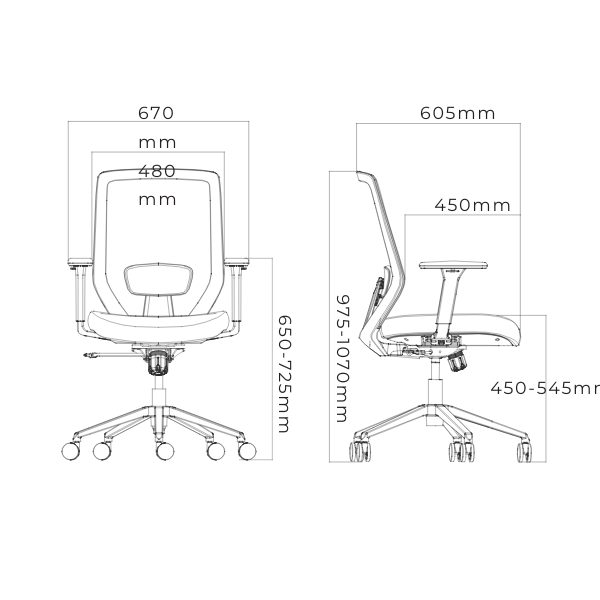 Dimensions: 670 W x 605 D x 975-1070 H (mm)
