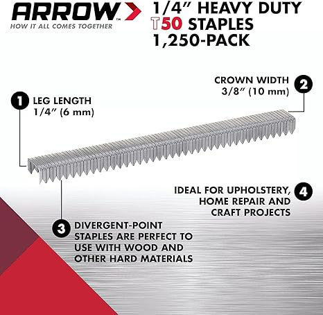 These staples are designed to be used with the Arrow staple guns, pneumatic tools, and hammer tackers,