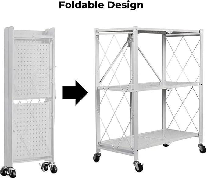 This foldable rack with wheels great for your kitchen, office, garage, and more, you can move it easily.