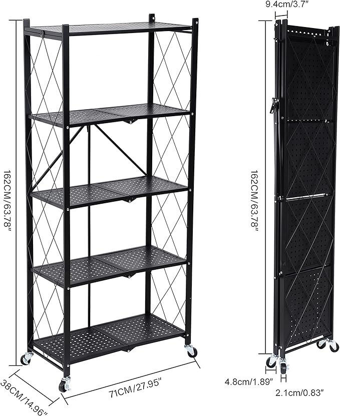 Foldable metal rack storage shelving for heavier storing and organization, It is great to use in living room, bedroom, kitchen , garage etc.