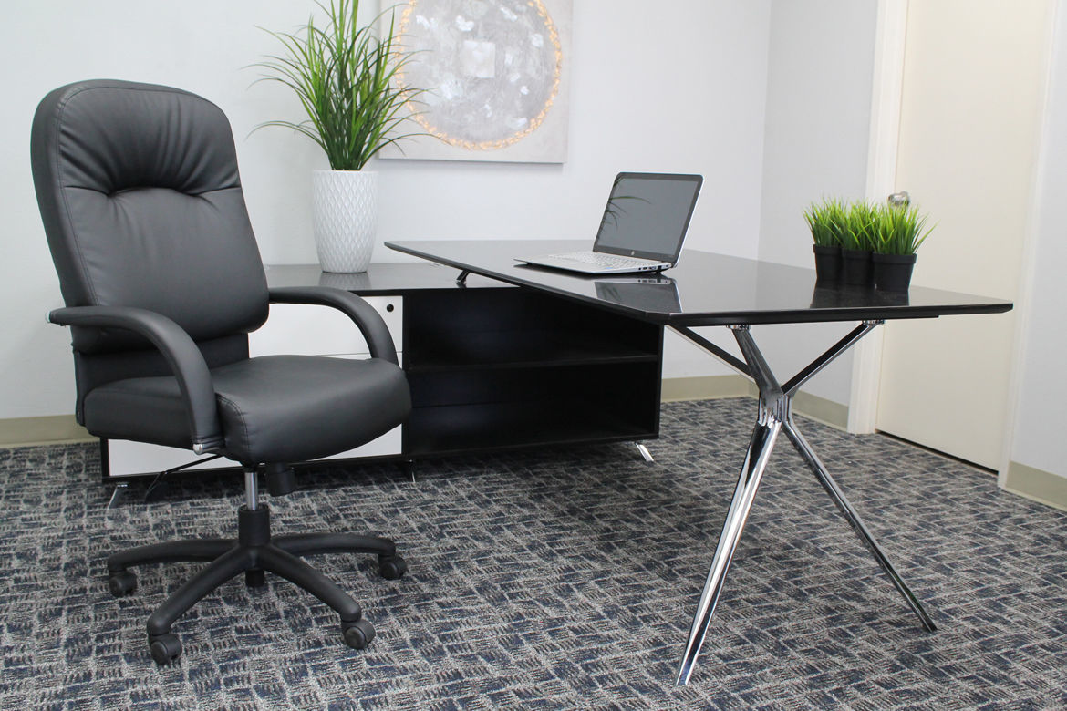 This Caressoft high back executive chair brings comfort and stability to any office environment. It features beautiful and durable Caressoft upholstery and high-back styling with exemplary lumbar support. Additionally, the chair has pneumatic gas lift seat height adjustment, adjustable tilt tension control, spring tilt mechanism, and an upright locking position. Its large 27-inch nylon base provides stability while affording plenty of mobility thanks to its five hooded double wheel casters. Those looking for a set will be please to know that it pairs perfectly with our B7406 medium back and B7409 guest chair models.