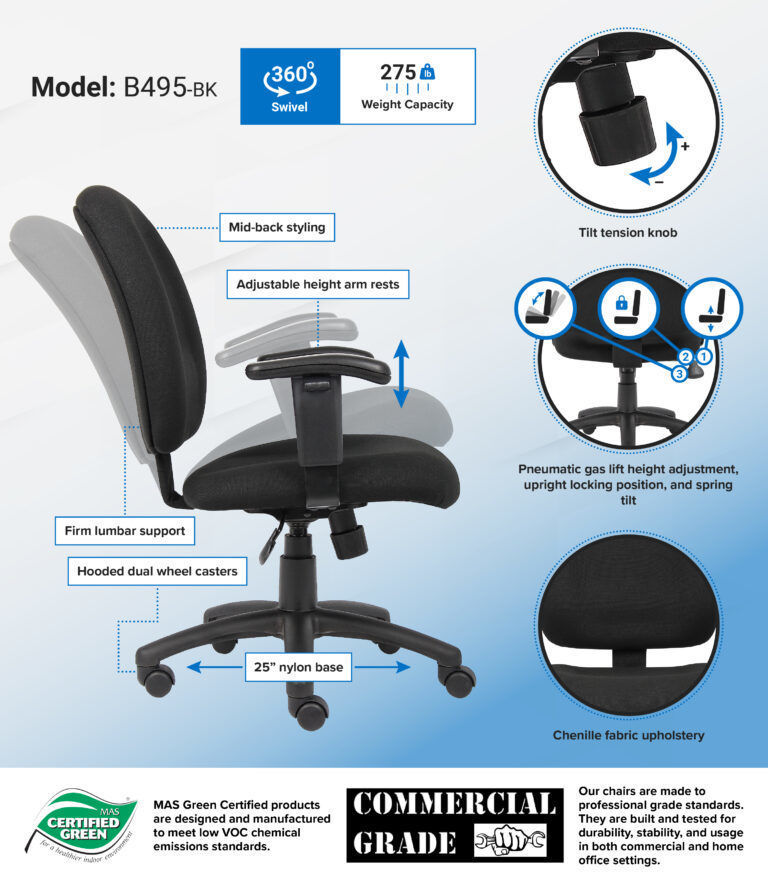 - Mid-back styling with firm lumber support
