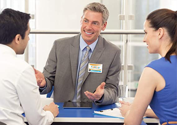 Pin style name badges with inserts, easy for you to customize and print your name badges from almost any computer or tablet