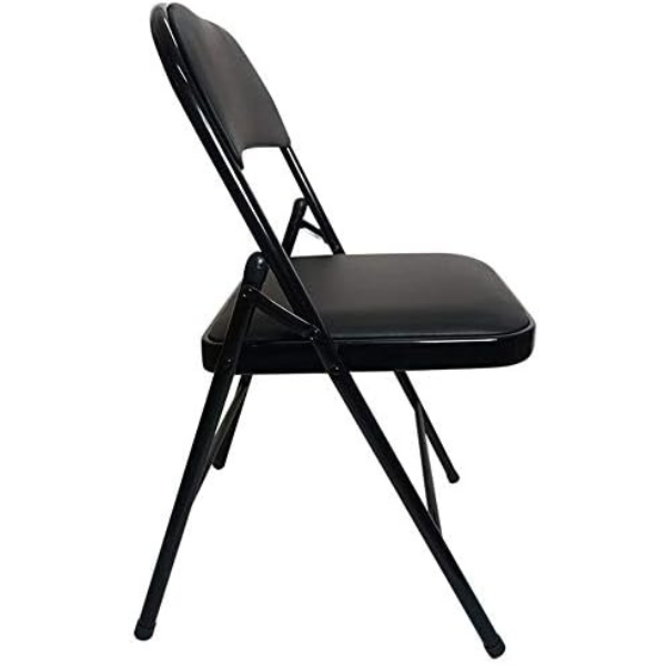 Sponge filled cushions and backrest give you a more comfortable experience. Sturdy steel frame, two cross - supporting structure can improve the stability of the chair, which makes the chair durable. Steel folding chairs are essential for entertaining guests at large games, parties or events.