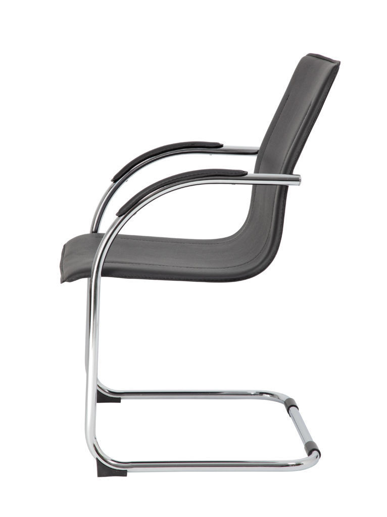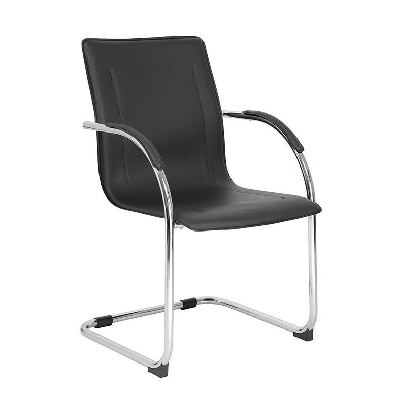 The base of the chair is a chrome cantilever design and offers a weight capacity of 250 lbs. This chair is the perfect blend of class and professionalism, without sacrificing comfort or quality. This chair makes a great accompaniment to any office.