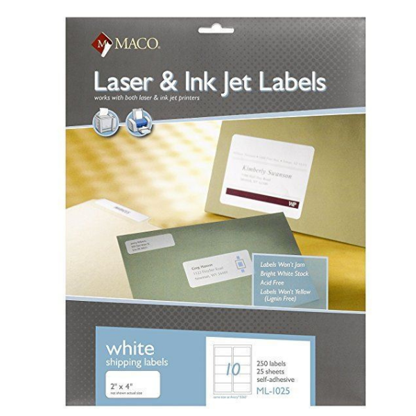 46-010 Maco Laser/Inkjet Labels 2x4 (250) #ML-1025