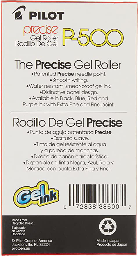 It doesn't matter if you're at school, at work, in the office or writing in your journal at home, Pilot Precise P-500 Gel Ink Rolling Ball Pens are precise & comfortable to use & flow smoothly & evenly in blue, black or red ink.