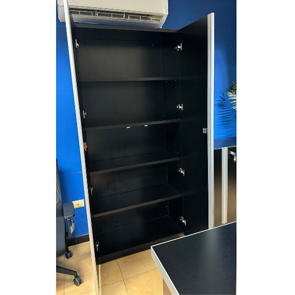 This 5 shelf cupboard comes with three (3) adjustable bookshelves and two (2) fixed. They can conveniently hold books, notepads, files, books, pens, sticky notes & various other office supplies.