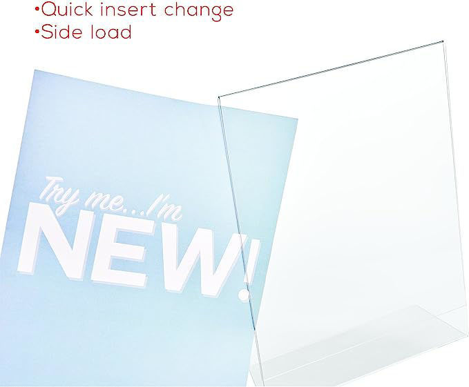 Acrylic slanted sign holder displays information to customers and protects your sign in high-traffic areas. Accommodates 8.5" x 11" portrait sized inserts