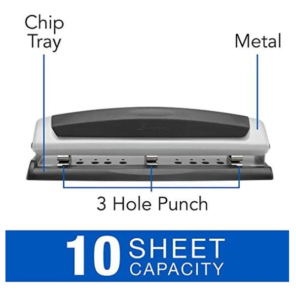 This 2 - 3 hole punch is a professional, metal hole punch that is specially designed for manual, precision cutting; up to 10 sheet paper punch capacity