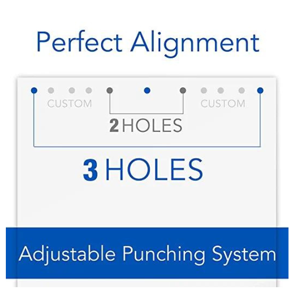 Manually punch 9/32" holes with precise, patented pin technology; semi-adjustable punch heads allow for 2 and 3 hole punching, Easy-glide chip tray prevents mess during disposal