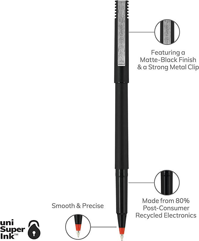 Sturdy metal roller point with liquid ink ensures a flawless writing experience.