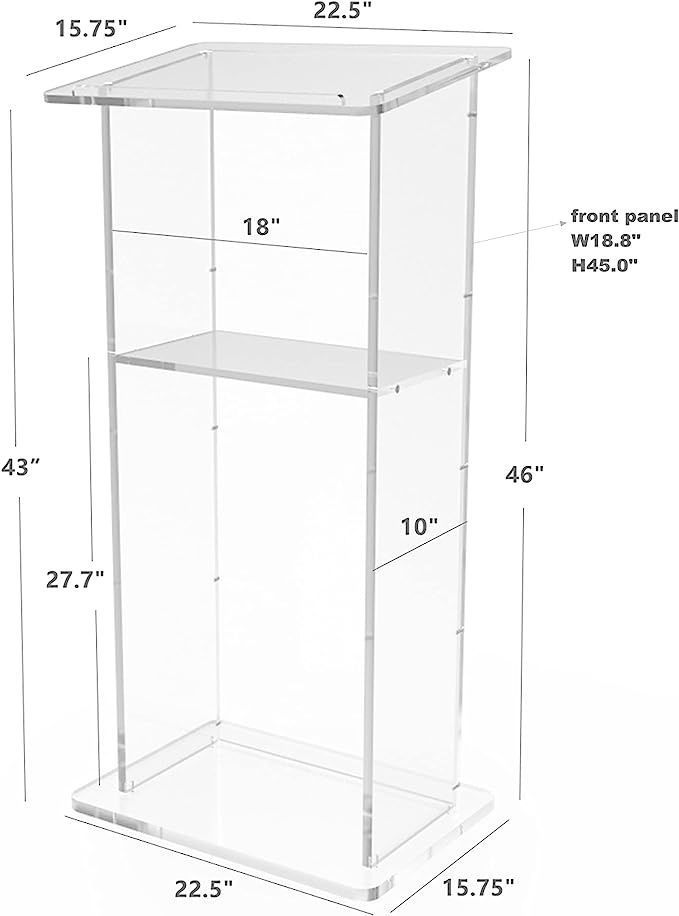 Clear podium is great to project a simple, clean and crisp look. Contemporary pulpit podium lectern look great in Churches, Schools, Hotels, Conferences, Funeral Homes, Stages, Debates, Wedding & Events, Restaurants Reception, Concierge etc. Easy screw aseembly. Contact us if u wish to order assembly service.