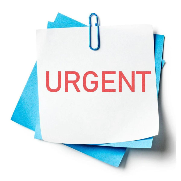 The stamp utilizes red ink, which stands out and catches attention, ensuring that the "URGENT" message is easily noticed.